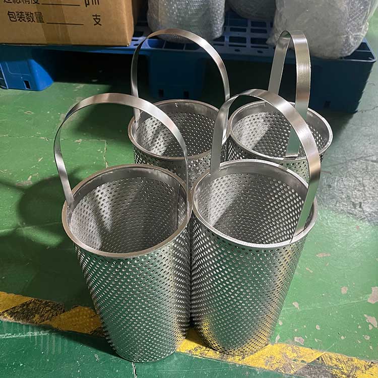 濾籃是一種用途非常廣泛的產品,兩層或三層不銹鋼網按固定結構疊放在一起經過裁剪,激光切割,燒,軋制,焊接,打磨,拋光等工藝加工而成一種不銹鋼絲網產品。濾籃具有過濾精度確定,強度高,易清洗等特點,是其他濾料,篩網不可比擬的性能。我廠可根據用戶需求或樣品設計加工特殊型號的過濾器用濾籃。