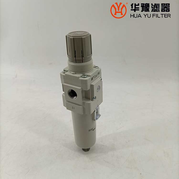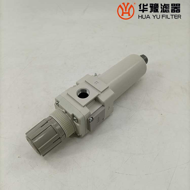 從進口流入的壓縮空氣,經(jīng)導流片的切線方向的缺口強烈旋轉(zhuǎn),液態(tài)油水及固態(tài)污染物受離心作用,被甩到水杯內(nèi)壁上,再流至底部。除去了液態(tài)油水及雜質(zhì)的壓縮空氣,通過濾芯進一步清除微小固態(tài)顆粒,然后從出口流出。 空氣中的溶膠狀的威力是能通過5um的濾芯的,擋水板能防止下部的液態(tài)油水被卷口氣流中,聚積在水杯內(nèi)的冷凝水,按動手動按針,便可以從排水口指出。濾芯有金屬網(wǎng)型、燒結(jié)型和纖維凝聚型。燒結(jié)型有銅珠燒結(jié)、樹脂燒結(jié)和陶瓷燒結(jié)等。銅珠燒結(jié)濾芯的表面和內(nèi)部都起到過濾作用,強度好,***,可清洗幾次重復(fù)使用。纖維凈聚型有樹脂類,人造纖維類材料等。金屬網(wǎng)型知識表面起到過濾作用。