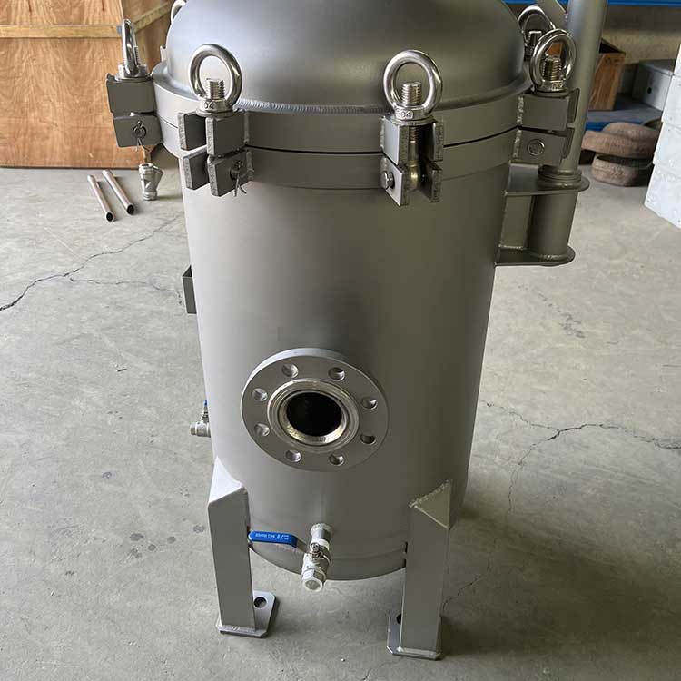 即精密過濾器,又稱保安過濾器,一般設(shè)置在壓力容器之前,以去除濁度1度以上的細(xì)小微粒,來滿足后續(xù)工序?qū)M水的要求;有時也設(shè)置在整個水處理系統(tǒng)的末端,防止細(xì)小微粒(如破碎的樹脂)進入成品水。