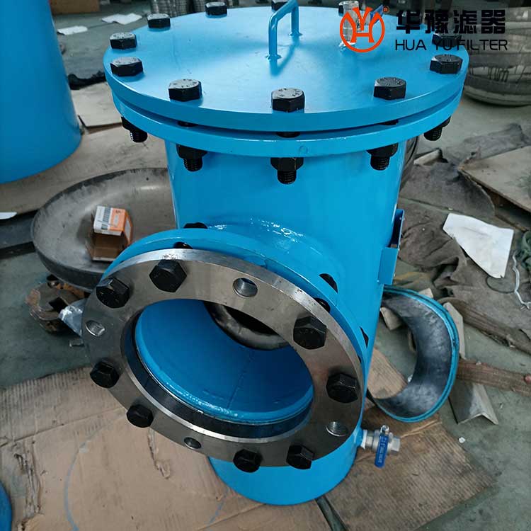 籃式過濾器主要由接管、主管、濾藍、法蘭、法蘭蓋及緊固件等組成。當液體通過主管進入濾藍后,固體雜質顆粒被阻擋在濾藍內,而潔凈的流體通過濾籃、由過濾器出口排出。當需要清洗時,旋開主管底部螺塞,排凈流體,拆卸法蘭蓋,清洗后重新裝入即可,因此,使用維護極為方便。