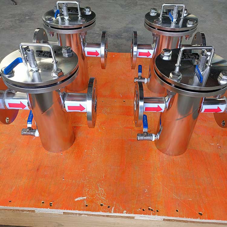 籃式過濾器主要由接管、筒體、濾籃、法蘭、法蘭蓋及緊固件等組成。當流體進入有一定規格的濾網的濾桶后,其雜質被阻擋,而清潔的濾液則由過濾器出口排出,當需要清洗時,只要將可拆卸的濾桶取出,處理后重新裝入即可,因此,使用維護極為方便。籃式過濾器具有結構簡潔,阻力小,排污方便等特點。適用介質可為水、油、氣。一般通水網為18~30目,通氣網為40~100目,通油網為100~480目,可按用戶要求制作濾網,介質溫度:≤200℃。