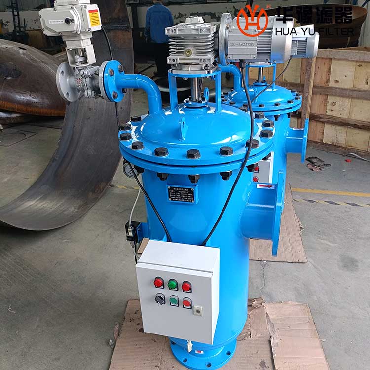 過濾器是水凈化過程中不可缺少的處理手段,用于攔截水中的各種雜質,以凈化水質或保護系統中其他設備的正常工作。普通網式過濾器因其結構簡單、過濾效果好、阻力小而廣泛應用于水源過濾、工業循環水系統等領域,但其缺點是納污量小、易受污物堵塞、清洗工作復雜,必須對設備進行拆卸才能實現對過濾部分的清洗,無法監控過濾器的狀態,而且受人為因素影響比較大,使整個系統的自動化程度很低。全自動過濾器可對原水進行過濾并自動對濾芯進行清洗排污,且清洗排污時系統不間斷供水。該設備與以往的過濾器相比具有自動化程度高,處理量大,可自行清洗排污,并不間斷供水,應用面廣泛等優點。